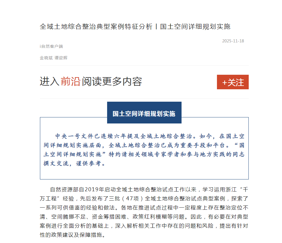 中央一号文件已连续六年提及全域土地综合整治。如今,在国土空间详细规划实施层面,全域土地综合整治已成为重要手段和平台。小编将“全域土地综合整治助力规划实施落地”系列11期内容整理成合集,以飨读者。