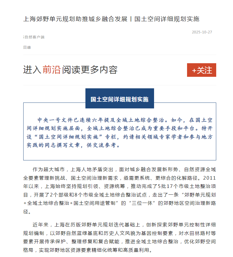 上海郊野单元规划助推城乡融合发展丨国土空间详细规划实施