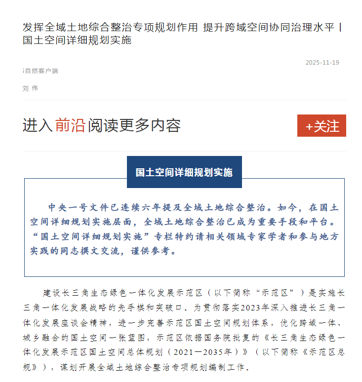 发挥全域土地综合整治专项规划作用 提升跨域空间协同治理水平丨国土空间详细规划实施